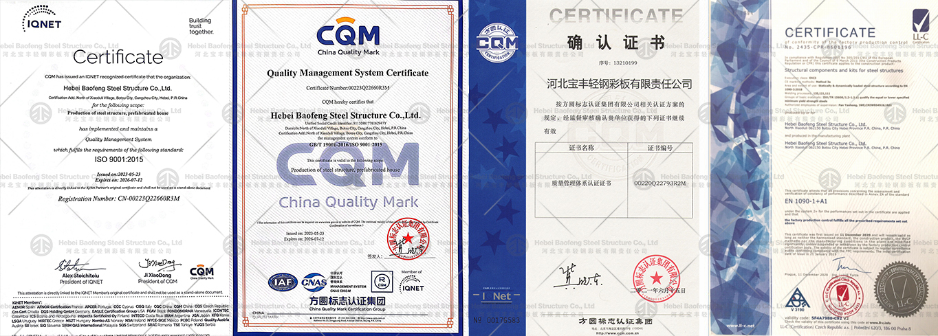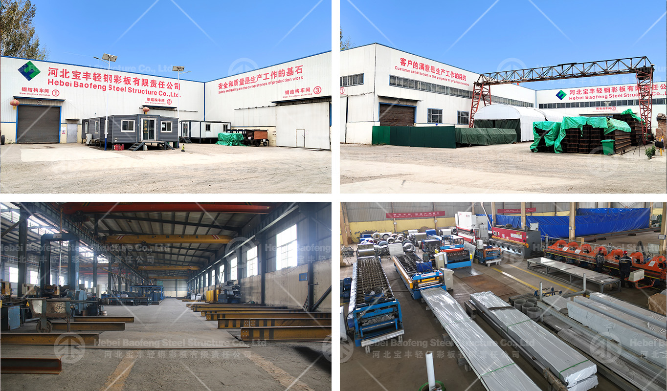 Hebei Baofeng Steel Structure Co., Ltd. is a comprehensive service company integrating environmentally friendly construction manufacturing and trade. It was founded in 2005. Our headquarter is based in Botou City Development Zone, Hebei Province, China, only 150km away from Tianjin port, which makes delivery convenient. Also, we have set different office branches at overseas. The factory covers an area of 50,000 square meters with total 300 staffs, mainly including 30 designers and engineers and 150 skilled technicians. Since 2009, we have been mainly sold to at more than 50 countries. Our main products lies in steel structures, prefabricated houses, and greenhouse etc. The steel structure projects are most in Africa, Southeast Asia and South America, the prefabricated houses and greenhouse are popular in Europe, South America, and Australia. The annual export volume is more than 300 million CNY. We are experienced in overseas projects, also can help clients in import procedures, custom clearance files and certificates.